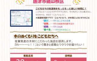 こんぺいとうの一日を体験してみませんか? 唐津市の放課後児童クラブ こんぺいとうのオープン学童を下記の日程で開催しますので、ご興味のある方はぜひご参加くださいますようお願い申し上げます。 場所:唐津市熊原町3119番地7(放課後児童クラブこんぺいとう) 参加費:1,000円(ランチ代込み [...]